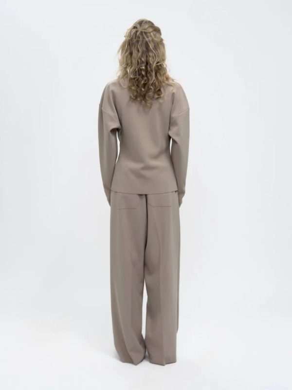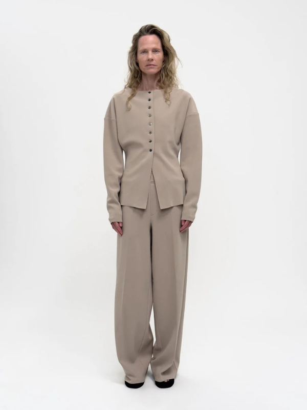 LAY: Birrot ar udviklet en særlig tekstil kaldet “LAY”, som består af flere lag crepe, der er “bonded” sammen. Det skaber et krølfrit og skulpturelt materiale med et elegant flad og et rent struktureret look.