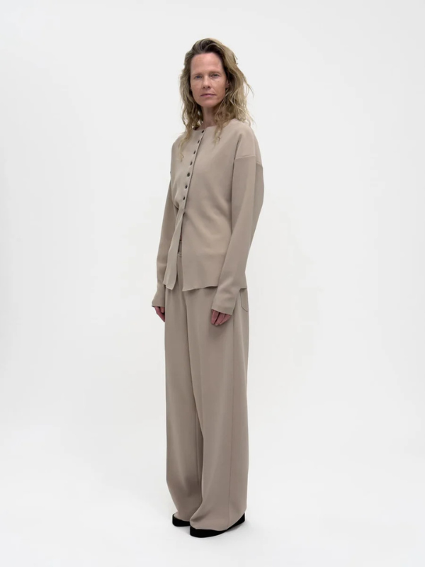 Løft din garderobe med denne stilrene cardigan i koreansk design fra det anerkendte mærke Birrot. Cardiganen er fremstillet i brandets signaturmateriale, Lay2 – en luksuriøs, 3-lags bonded crêpe, som giver et eksklusivt og struktureret udtryk. Det minimalistiske design kombinerer moderne koreanske silhuetter med klassiske detaljer.
